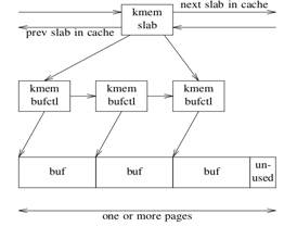 2. 相同大小的结构会被放在一个队列中,称为一个slab,所有的同类slab由一个kmem_cache管理