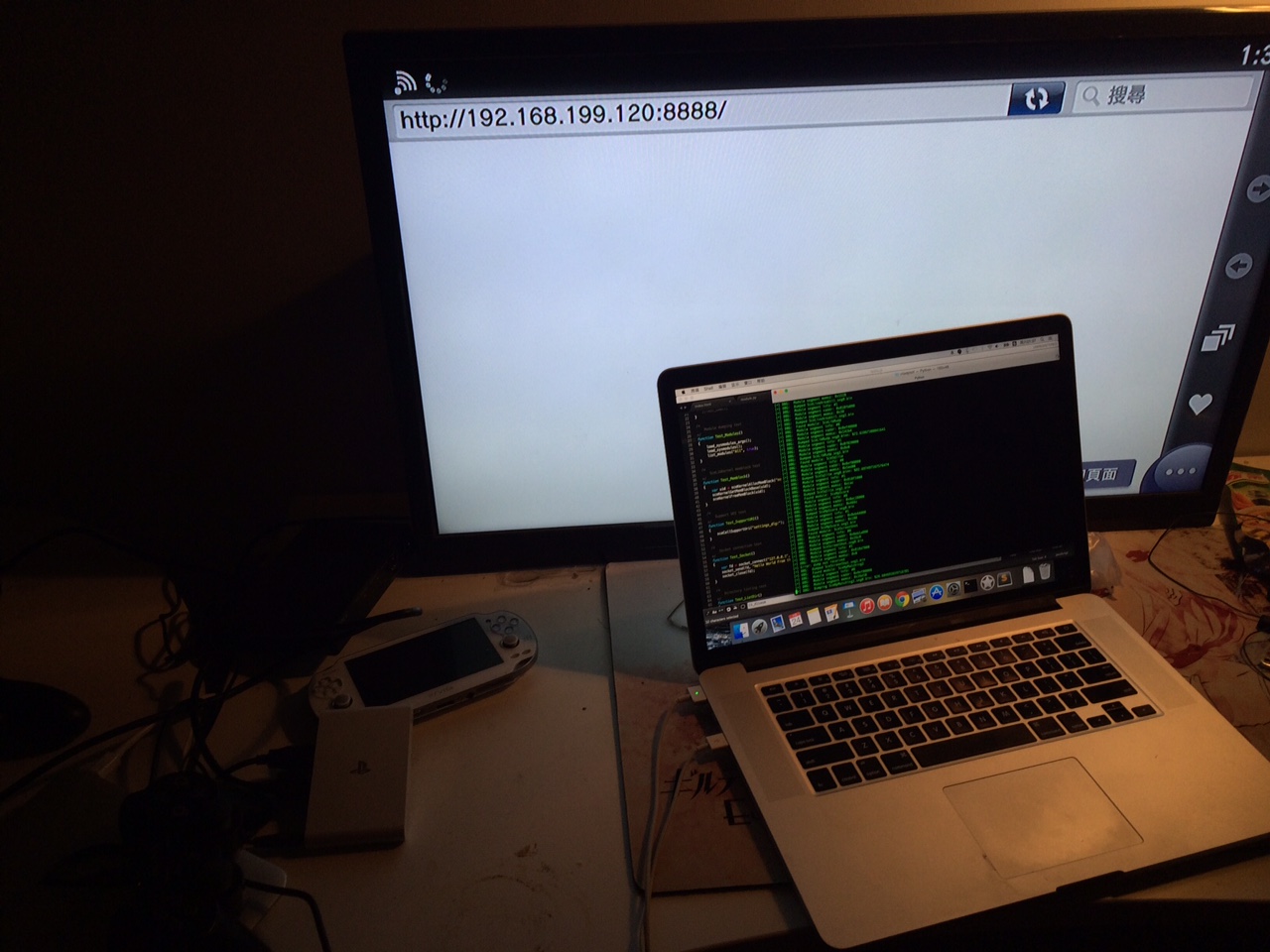 图为在PSVita TV上通过浏览器执行代码。4月份vitasploit更新之后已经可以做trinity-like syscall fuzzing了